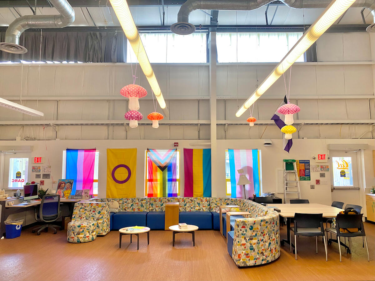 Connected with the back of the Cecilia Chung Resource Center is the Kayla Moore QT BIPOC* lounge. This lounge is a safe space for queer and / or trans folk who identify as Black / Indigenous / a person of color.